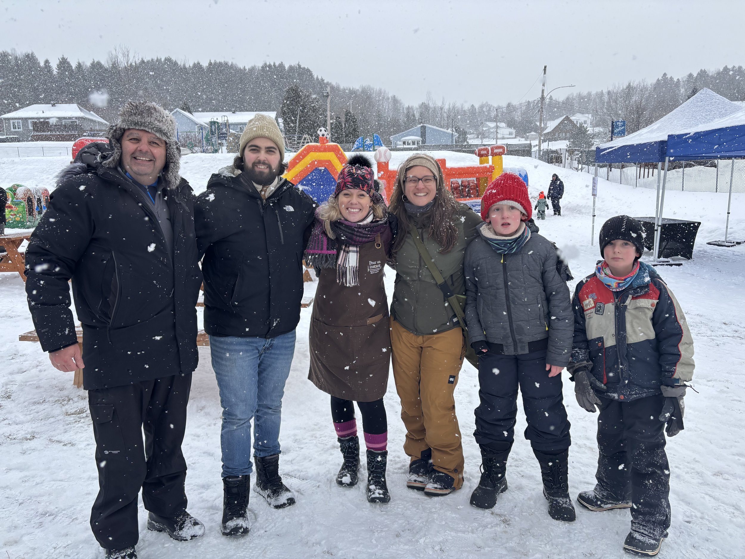 De gauche à droite : Gérald, co-fondateur et administrateur du Festival, Léandre, directeur adjoint aux événements de la Ville de La Malbaie, Angélique, fondatrice du Festival, Josée, citoyenne du village et directrice du Domaine Frais Air et ses deux garçons.